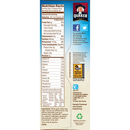Try Quaker Oatmeal Squares Brown Sugar.Quaker Oatmeal Squares Brown Sugar is packed with a hearty crunch that wakes you up and has just the right amount of sweetness to help fuel you up to conquer the morning. As breakfast or just a snack, Quaker Oatmeal Squares are a great way to get a jumpstart on your daily whole grain consumption and in turn, take the first step towards a heart-healthy lifestyle*.Here are a few reasons you'll love Quaker Oatmeal Squares:each square is packed with the rich sweetness of brown sugar46 grams of whole grains - 96% of your daily minimum whole grain needs per serving** 5 grams of fiber and 6 grams of protein per serving*Diets rich in whole grain foods and other plant foods and low in saturated fat and cholesterol may help reduce the risk of heart disease.**Experts recommend eating at least three one-ounce equivalents of whole grains, or 48 grams daily, based on a 2,000 calorie diet. Quaker Oatmeal Squares has 46 grams of whole grains per serving. The benefits of starting each day with a healthy breakfast.People who eat breakfast each day are more likely to meet their nutritional recommendations, such as those for fiber, vitamins and minerals. Breakfast foods like whole grain oatmeal and ready-to-eat cereals, fruits, 100% juice, and low-fat dairy products, are rich in these essential nutrients. They also provide you with the energy and nutrition you need to start your day in a smart way.Quaker and Quaker Oatmeal Squares are registered trademarks of The Quaker Oats Company.Feature