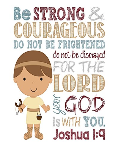 -. Title : Biblical Superhero - Christian Wall Art P.R.Int David and Goliath Nursery Decor - Be Strong & Courageous Joshua 1:9 Bible Verse - Nursery, Playroom or Kids Room Decor