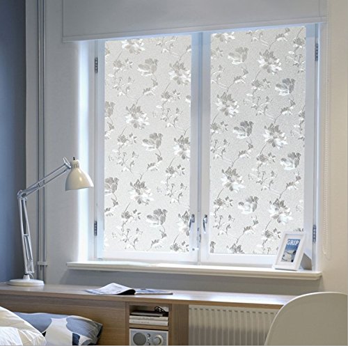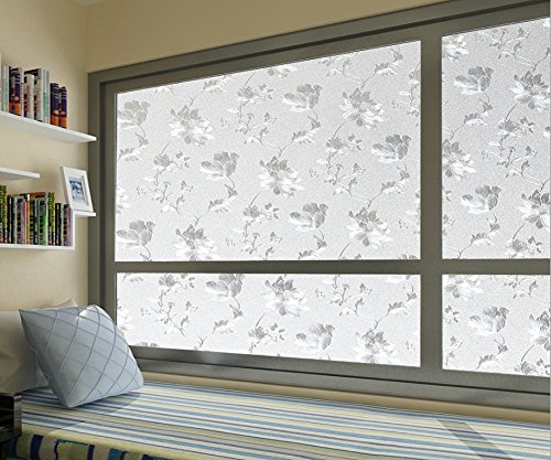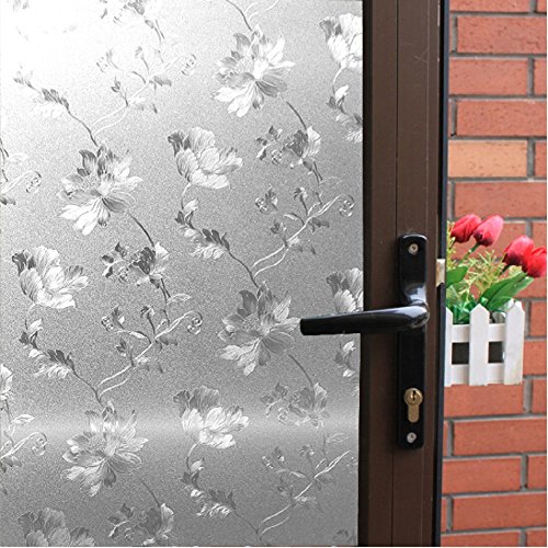 Cottonrose Embossed Window Film No-glue Decorative Privacy Glass Window Film Non-adhesive Frosted Static Cling Reflective Window Film for Office Home Bathroom 17.7-by-78.7 Inches