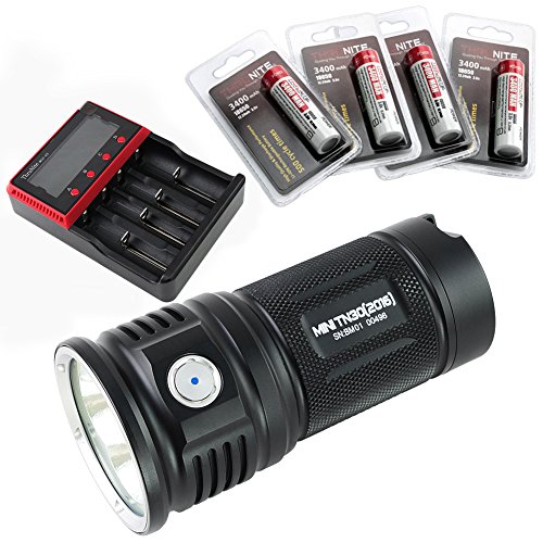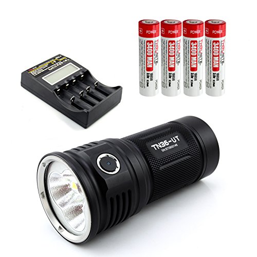 Studio : Thrunite Publisher : Thrunite Product Description Note: Only to ensure the 18650 batteries' discharge current can keep more than 5A, TN36 UT flashlight can get into Turbo and Strobe modes. Specifications: -ThruNite TN36 UT -LED: CREE XHP 70 with a lifespan of 20 years of run time. - Runs on: 4 x 18650 (ThruNite 18650 3200Mah). - Working Voltage: 10.5-17.5V. - Output/Runtime*: Strobe(7300 lumens /137 minutes), Turbo(7300 lumens /95 minutes), High(2500 lumens /194 minutes), Medium(850 lumens /587minutes), Low(130 lumens /54 hrs), Moonlight(2 lumens /33 days). - Max output of NW is a bit less than CW. - Peak Beam Intensity: 20360cd. - Max beam distance: 285m. - Impact resistant: 2 meters. - Waterproof to IPX-8 Standard (2M). - Weight: 397g without battery. - Dimensions: 135.4 mm in length x64 mm in diameter. -ThruNite Mini TN30 LED: Three CREE XP-L V6 LEDs with a lifespan of 20 years of run time. Six output mode: firefly, low, medium, high turbo and strobe. Battery: 4 x 18650 (ThruNite 18650 3400mAh) Working Voltage: 10.5 - 17 V Peak Beam Intensity: 26000cd Max beam distance: 320m Waterproof to IPX-8 standard (2 meters) Weight: 403g without battery. Output mode/Runtime*: Strobe (3660 lumens/234 minutes), Turbo (3660 lumens /120 minutes), High (2060 lumens / 190 minutes), Medium (470 lumens / 15 hrs), Low (46 lumens / 123 hrs), Moonlight (0.5 lumens/98 days) Accessories: Holster x1 Spare O ring x2 Spare Switch Cap x1 Battery Carrier x1 (inside the flashlight) 0