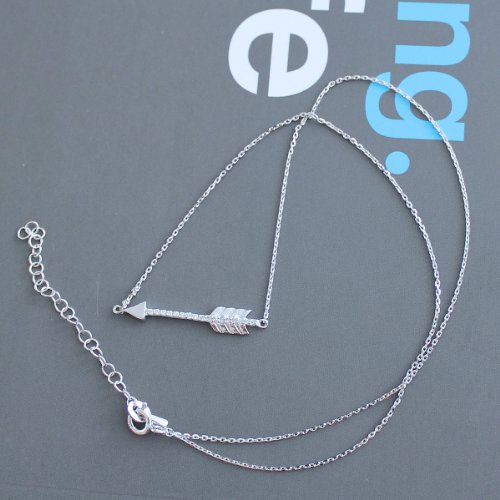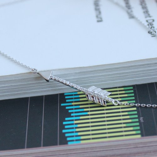 - Feature : This necklace is made of solid sterling silver plated with rhodium for anti-tarnish. Arrow is set with small diamond-simulated cubic zirconia stones, which shine and sparkle beautifully just like real diamonds. / Necklace is adjustable from 16" to 18" long, arrow measures 22 x 6 mm. / Comes with a gift box and free shipping (want free shipping but don't have prime? buy from us directly, click "More buying choices")