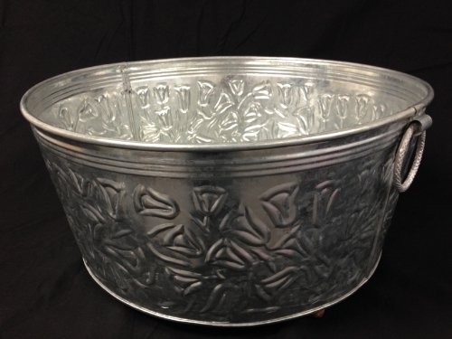 -. Brand : KINDWER -. Color : Silver -. EAN : 0692789920114 -. Feature : Free Shipping on all orders! / Made of durable galvanized steel / Round Shape with metal handles and feet / Can be used as a a beautiful planter or flower holder / Manufacturers Close-out - only a few left! -. Label : Original Rug Company -. Manufacturer : Original Rug Company -. Model : A030 -. MPN : A030 -. PackageQuantity : 1 -. PartNumber : A030 -. ProductGroup : Kitchen -. ProductTypeName : KITCHEN -. Publisher : Original Rug Company -. Size : 18x18x9" -. Studio : Original Rug Company -. Title : Large 18" Galvanized Tulip Round Party Tub -. UPC : 692789920114