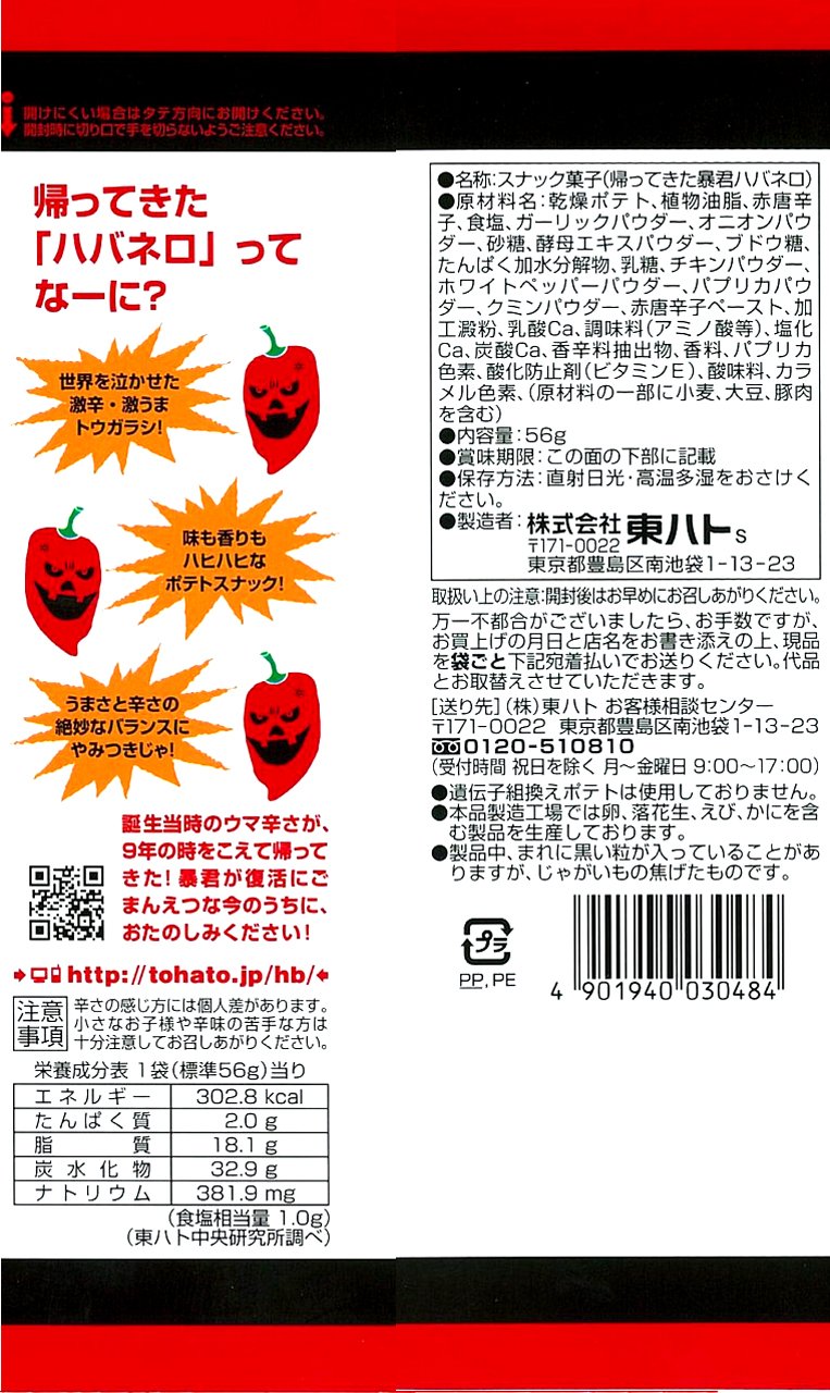 Bokun Habanero (Tyrant Habanero) Returns 56g x 12 JAPANESE No.1 Hot Potato Chips (Japan Import)
