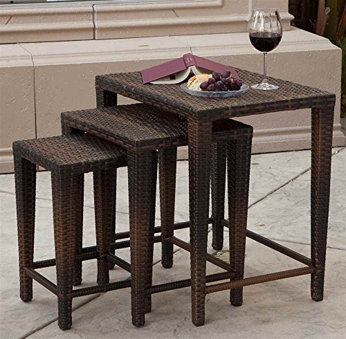 -. Brand : Best Selling Home -. Color : Brown -. EAN : 0816764014401 -. Feature : Includes small, medium and large table / Can be used together or separately / Easy storage / Weather resistant / UV protection -. Label : Best Selling Home Decor Furniture LLC -. Manufacturer : Best Selling Home Decor Furniture LLC -. Model : BSHD551 -. MPN : 219441 -. PackageQuantity : 1 -. PartNumber : 219441 -. ProductGroup : Lawn & Patio -. ProductTypeName : OUTDOOR_LIVING -. Publisher : Best Selling Home Decor Furniture LLC -. Studio : Best Selling Home Decor Furniture LLC -. Title : 3-Pc Nesting Table Set -. UPC : 637162659410