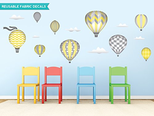 -. Title : Hot Air Balloons Fabric Wall Decals - Five Color Options Available - Set of 9 Hot Air Balloons and Clouds