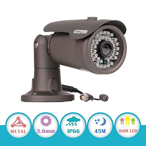 EWETON 1/3" CMOS 1200TVL CCTV Home Surveillance Weatherproof 36 Led 3.6mm Lens Wide Angle Bullet Security Camera with IR Cut-100ft IR Night Vision Distance, Aluminum Alloy Housing