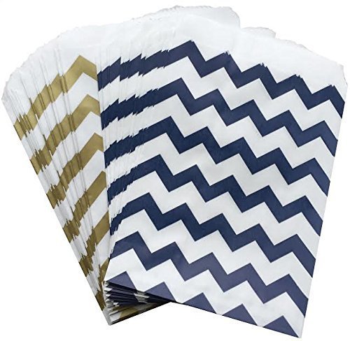 - Navy blue and gold Chevron 5.5 x 7.5 Treat/Favor Paper Bags
