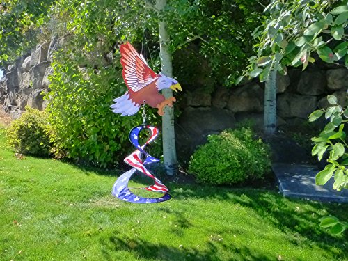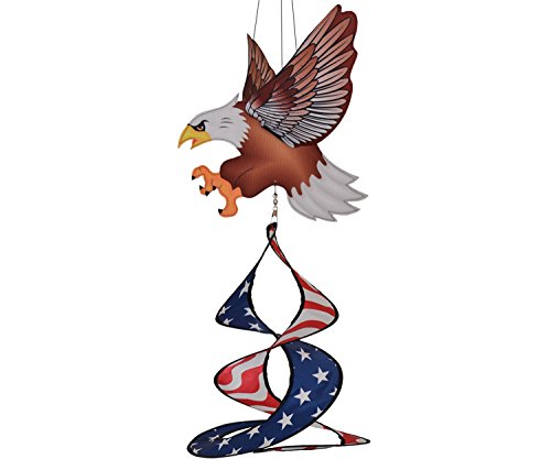 Studio : In The Breeze Publisher : In The Breeze Binding : Lawn Patio Product Description The In the Breeze Patriot Eagle Theme Duet is a colorful and charming addition to any outdoor decor. The 3 dimensional regal Bald Eagle features flexible wings that move in the wind. The Patriotic Spin Duet hangs below and is engineered to spin. 0