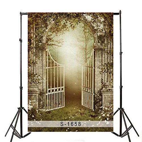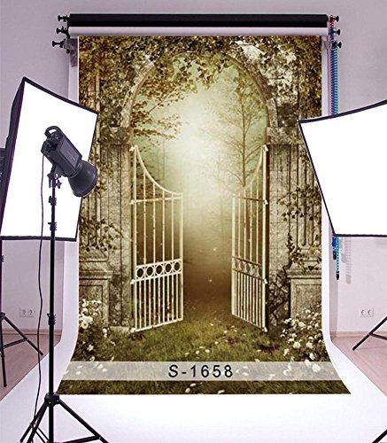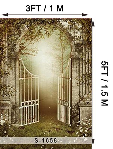 Laeacco 3x5ft Vinyl Thin Photography Backgrounds Ancient Garden Dreamlike Fairytale Forest Magic Arched Gate Trees Vine Outdoor Children Girls Portratis Halloween Photo Backdrop 1x1.5m Studio Props