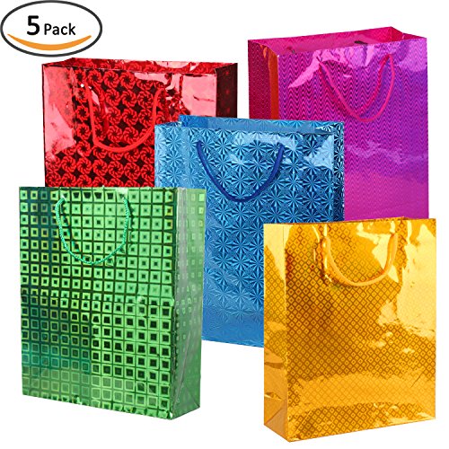 Rumcent Bling Bling Fashion Laser Gift Bag, Geometric Graph Design Tote Bag, Party Favor Chrome Paper Bag, Birthday Gift Pack For Celebration - Set Of 5 Color,Geometric pattern Random