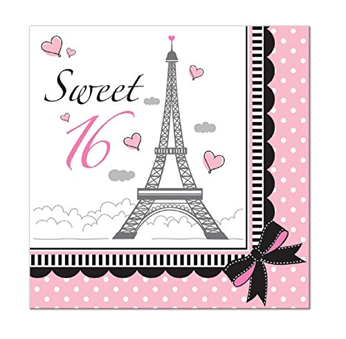 Party in Paris Sweet 16 Birthday Lunch Napkins 36 Per Pack
