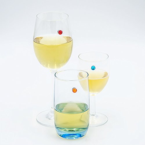 -. Feature : NO MORE MIXED UP GLASSES! -These multi colored wine charms will help you and your friends remember which glass is yours. No more guests drink others' wine! / BIG PARTY SET OF 12 -Charm your wine glasses, mark the martini glasses, add sparkles to your champagne flutes. / WOW YOUR GUESTS -These wine charms are truly hostess necessity. Apply them before guests arrive or display them out for guests to do on their own. Guests are sure to be amazed by these cool wine charms. / FUN FOR BIRTHDAY LUNCHES, HAPPY HOUR,BACHELORETTE PARTIES or GIRLS NIGHT OUT / GREAT ADDITION TO ANY WINE GIFT BASKET -Make your wine gift special and unique by adding this adorably wine charms set with that bottle of wine.