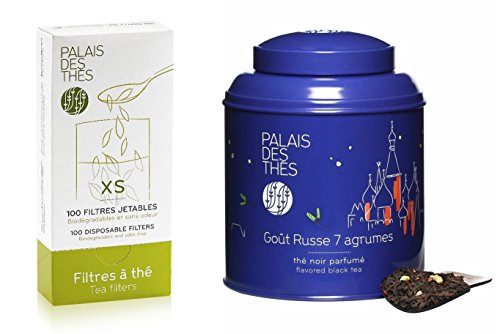 -. Title : Loose Leaf Black Tea & Tea Filters - Gout Russe 7 Agrumes - Citrus Flavored Black Tea in Metal Canister 3.5 oz - 100-Pack Single Serving Tea Bags