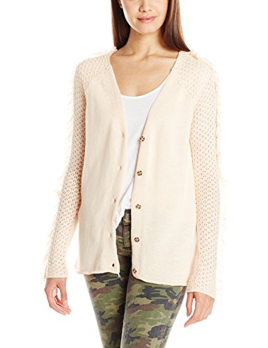 A fun unique relaxed fit button up cardigan with loop yarn detailing down the top of the raglan sleeves.