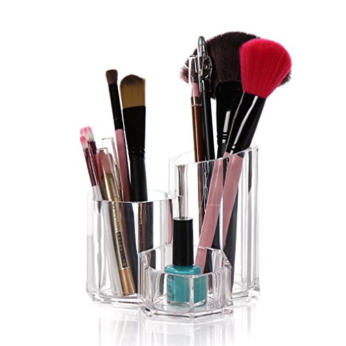 CYacrylic 3 Slot Acrylic Face Makeup Brushes Storage Organizer and Makeup Brush Holder ,5.3x5.3x4.7inch,pack of 1