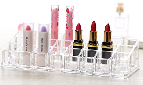 CYacrylic 24 Grid Lip Gloss Organizer with Display and Lipstick Holder,8.9x3.7x2inch,pack of 1