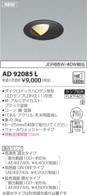 ●適合ランプ 高演色 調光タイプ(調光範囲100~約5% AE49740L \4,400(税抜))