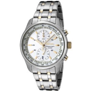 세이코 맨즈 크로노그래프 스테인레스 스틸 워치 현대와 크로노그래프 기능을 편성의 고기능 시계용 스타일링 스타일리시,별로로.이 때계의 실버 톤 다이얼 에서의 subdials를 뽐내어 6과 12 시의 위치와 날짜6 시의 위치에 창.다이얼도 골드 톤의 바톤의 시간을 제공 하고 있는 마커는,골드 톤의 손,및 하드렉스 크리스탈.당신의 손목 니코의 행복의 모든 것을 유지하는 하는 것입니다.투 톤 컬러 스테인레스 밴드(스테인레스 스틸 골드 톤의 액센트에)그것은이라고 닫아 더블 푸쉬 버튼 접어서 쌓아 안전 clasp.에 사이에 둬진 골드 톤의 왕관2개의 금의 톤《풋샤》은,밴드를 보완.그 외의 기능으로서는,신뢰성의 높은 일본제 쿼츠를 포함하는 330피트( 100에의 이동과 내수 미터).복잡한디자인나 서브 다이얼의 시스템,이것에 대담한 세이코 크로노그래프는,시간에 정확하다고.