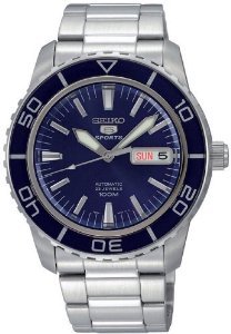 블루 다이얼과 세이코 맨즈SNZH53실버 스테인레스 스틸 자동 워치.