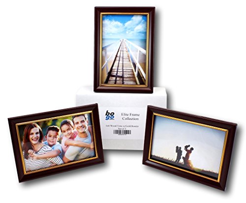 -. Binding : Kitchen -. Brand : bogo Brands -. Color : Wood Tone, Gold -. EAN : 0099461262973 -. Feature : OVERALL (Exterior) Dimensions - 7 inches x 5 inches. Back Interior - 4 x 6 in / VIEWABLE AREA - Dimensions - 3.75 x 5.625 inches. / HORIZONTAL or VERTICAL ORIENTATION - Can be put on a desk, table, book case, and more. / QUALITY MATERIAL - Durable MDF construction with decorative wood toned finishing / SUPER VALUE PACK - Included with your purchase is 3 matching 4x6 picture frames! -. IsAutographed : 0 -. Label : bogo Brands -. Manufacturer : bogo Brands -. MPN : B00YT8SMJU -. PackageQuantity : 3 -. PartNumber : B00YT8SMJU -. ProductGroup : Home -. ProductTypeName : HOME -. Publisher : bogo Brands -. Size : 4 x 6 -. Studio : bogo Brands -. Title : Set of 3 4x6 Inch Picture Frame Value Pack by bogo Brands -. UPC : 099461262973