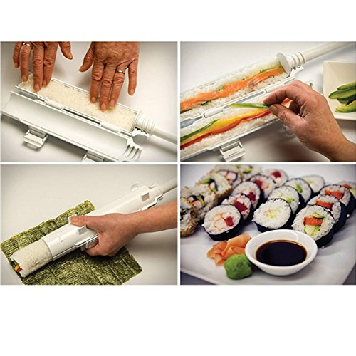 Perfect sushi is no longer an expensive restaurant food. You will save quite a bit of money because you now don't have to go out for sushi. The Sushi Bazooka is the fastest and easiest way to make restaurant quality sushi at home. Using your own choice of imaginative fillings will make you a sushi expert. The main advantages: 1.Easy to use 2.Dishwasher-safe ,easy to clean 3.Rolls are ejected easily 4.Add the ingredients you like 5.Bright color design 6.Fun to use TIPS: 1.Keep your hands wet, you will not have rice in every possible exposed orifice. 2.It is better that packing the rice against the sides tight. 3.It recommend that coating the inside with a little sesame or vegetable oil . 4.Our product also comes with instruction manual. 0 |