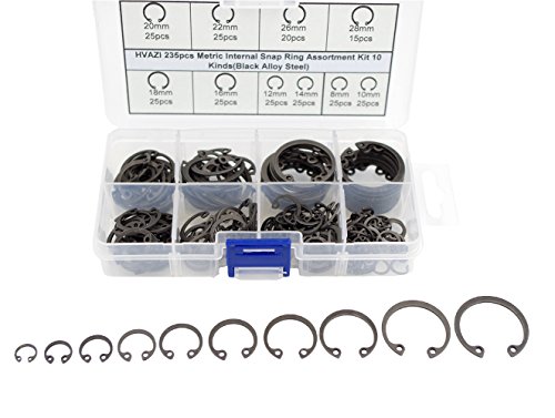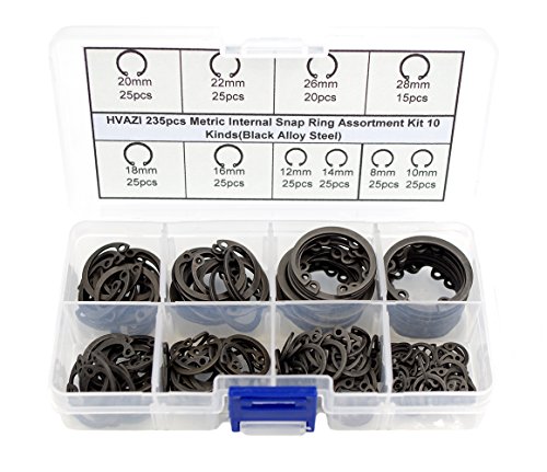 HVAZI 235pcs Metric Internal Snap Ring Assortment Kit 10 Kinds(Black Alloy Steel)