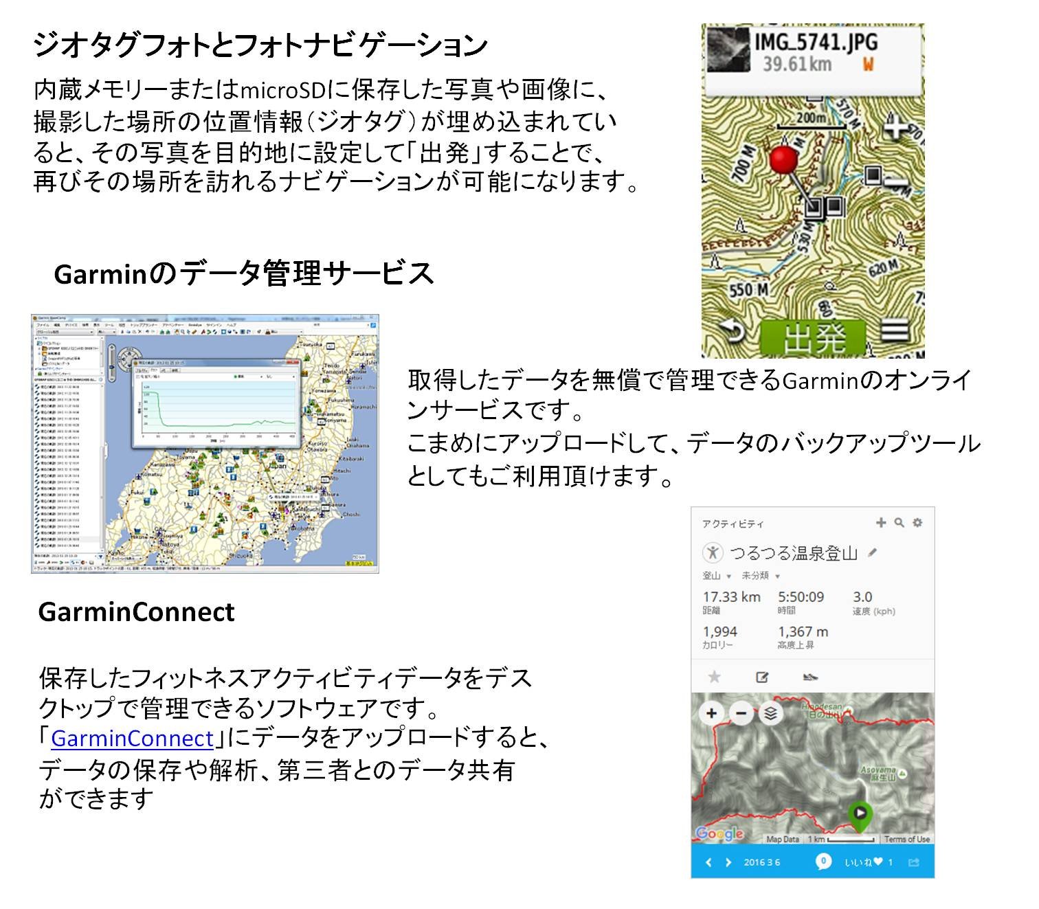 Action camera When connected to the VIRB series, you can shoot pictures and recordings with geotagged with remote control (remote control).