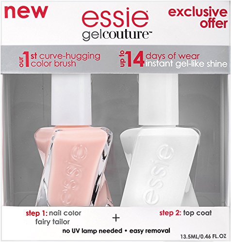 ReleaseDate : 2017-07-16 Studio : essie Publisher : essie Binding : Health and Beauty Product Description 2-piece kit at a special value featuring: fairy tailor color coat- when you wish upon a star, this sheer nude pink swoops in to make all your dreams come true. really. gel couture top coat- quick drying top coat that seals and helps protect, to magnify shine for an ultra-glossy finish. ? up to 14 days of wear and instant gel-like shine in an easy 2 step system ? quick application, easy removal ? patent-pending curve hugging brush for perfect color coverage ? two-piece kit for gel-like perfection Packaging may vary, what you receive may not be what is reflected on site. from the house of Essie comes gel couture nail polish, an extravagantly sophisticated collection, crafted to perfection and fashioned to last. designed with the haute vision of couture, the line presents 42 brand new colors with staying power that introduce luxury to your fingertips. perfect for both salon and at-home application, the instant gel-like shine is delivered in an easy 2-step system that anyone can master with up to 14 days of wear. the patent-pending curve hugging color brush guarantees perfect coverage and a flawless finish. no up lamp needed, easy removal. step 1: apply 2 coats of gel couture color to clean, bare nails; step 2: finish with 1 coat of gel couture top coat Caution: keep from heat or flame. 0