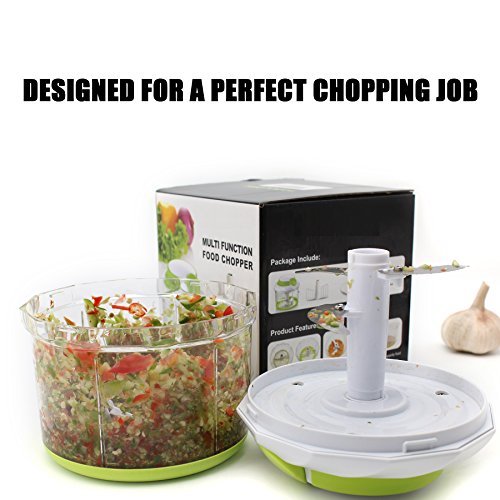 -. Feature : POWERFUL & VERSATILE: Powerful handheld herb / vegetable / food chopper. Perfect for slicing vegetable/fruit salads, cutting various foods for baby, chopping nuts, herbs, veggies, pesto, hummus, salsa, guacamole, meat for meatloaf, ice, and more. It can be used equally well as a vegetable chopper, salad chopper, onion chopper, garlic chopper, herb chopper or as a general-purpose manual food chopper. / DESIGNED FOR A PERFECT CHOPPING JOB: The Topulors Topulors Food Chopper features sharp stainless steel blades for fast and even chopping/mincing, comfort soft grip lid, anti-skid base, easy pull cord, and a large handle ideal for easy leverage. This is 4 cup size, enough for family use, easily handle your big job as well as small job. / LARGE & SAFE TO USE: 4 Cup Capacity. Great for all kitchens, RVs, travel and camping. Made from BPA free, food safe plastic. Blades are all concealed during use for the utmost safety | EASY CLEANING: Blades and bowl are top-rack dishwasher safe. Components come apart for easy cleaning. / HOW DOES IT HELP YOU? It's convenient to use, and makes vegetable preperation fun and easy. This hand food chopper takes the hard work out of chopping vegetables, fruits, nuts and herbs. It is the perfect onion chopper that doesn't make your eyes water. In just a few pulls, the blade mechanism begins to chop and blend your ingredients, with no electricity required. The included mixer blade can blend ingredients quickly / BUY WITH CONFIDENCE: We are the trusted kitchen brand located in TX,USA. You get a full unconditional money back guarantee if you are not happy with your food chopper.