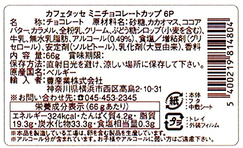 原材料:砂糖、カカオマス、ココアバター、カラメル、全粉乳、クリーム、ぶどう糖シロップ(小麦を含む)、牛乳、無水乳脂肪、アルコール(0.49%)、食塩/増粘剤(グリセロール)、安定剤(ソルビトール)、乳化剤(大豆由来)、香料