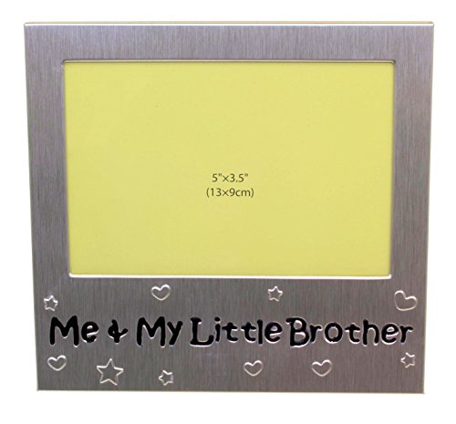 Me and My Little Brother - Photo Picture Frame Gift - Will take a photo of 5 x 3.5 Inches (13 x 9 cm) - Brushed Aluminium Satin Silver Color.