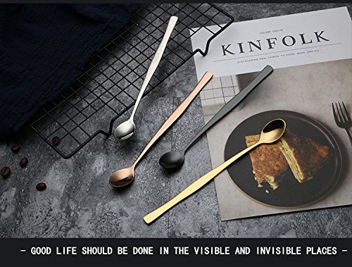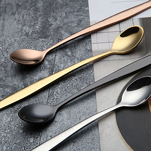 ★[LONG HANDLE DESIGN] Each of long handled spoons up to 7.5inch, fits all tall glasses, cups, goblets, quite suitable for mixing drinks like lemonade iced tea, ice coffee, milkshakes, root beer floats etc