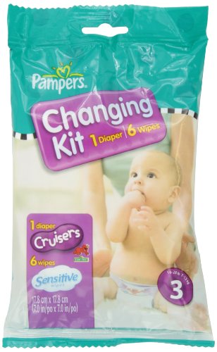 -. Binding : Health and Beauty -. Brand : Pampers -. EAN : 0814521010765 -. Feature : 3-way fit gives babies our best fit ever so they have the freedom to play their way / Pampers cruisers diapers offer up to 12 hours of leakage protection / Now with the quilted softness of saddlers (available in sizes 3 and 4) / New sesame street graphics feature your favorite characters on every diaper -. IsAdultProduct : 0 -. Label : Pampers -. Manufacturer : Pampers -. MPN : 1076 -. NumberOfItems : 10 -. PackageQuantity : 10 -. PartNumber : 1076 -. ProductGroup : Health and Beauty -. ProductTypeName : HEALTH_PERSONAL_CARE -. PublicationDate : 2013-08-30 -. Publisher : Pampers -. ReleaseDate : 2013-08-27 -. Size : 3 -. Studio : Pampers -. Title : Pampers Cruisers Changing Kit, Size 3, Unscented, (Pack of 10) -. UPC : 814521010765