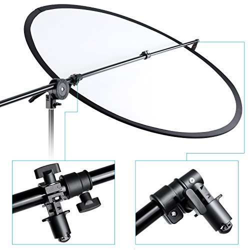 Note: The sandbag is EMPTY. Description: 43 inches/110 centimeters 5 in 1 Reflector: Gold - helpful for creating warm outdoor sunset scenes, or angelic halo effects. Silver - used to enhance the light in low light situations. White - brightens up the shadows to produce a softer light, while it is not as bright as the silver side is. Black - makes shadow and creates a certain dark and mysterious mood. Translucent - acts as a diffuser between the light source and the object which softens the harsh appearance. Size open: 43 inches/110 centimeters Size collapsed: 15 inches/35centimeters 26-75 inches/66-190 centimeters Light Stand: Solid locking capabilities ensure the safety of your lighting equipment when in use. Folded height: 26 inches/66 centimeters Maximum height: 75 inches/190 centimeters Spigot: 1/4" (need adapter to convert to 3/8") Segments: 3 30-70 inches/77-180 centimeters Reflector Holding Arm: Two rubber grips are used to grip the rim of the reflector. You can adjust the length by moving these two grips to accommodate different size of the reflectors.This is a 3-section extension arm designed to hold reflector and panel in different sizes and shapes. The versatile swivel joint allows photographers to adjust the angle between the light stand and the reflector arm boom. Extend Length: 70 inches/180 centimeters Fold Length: 30 inches/77 centimeters Blue/Black Sangbag(Sandbag is EMPTY!): It can be filled with sand, gravel, even nuts and bolts. It is used to stabilize bases, tripod stands or lighting equipment. Each pouch: 9 x 10 inches Package Contents: 1 x 43 inches/110 centimeters 5 in 1 Reflector 1 x 26-75 inches/66-190 centimeters Light Stand 1 x 30-70 inches/77-180 centimeters Reflector Holding Arm 1 x Clamp Pivot 1 x Hook 1 x Blue/Black Sangbag 0