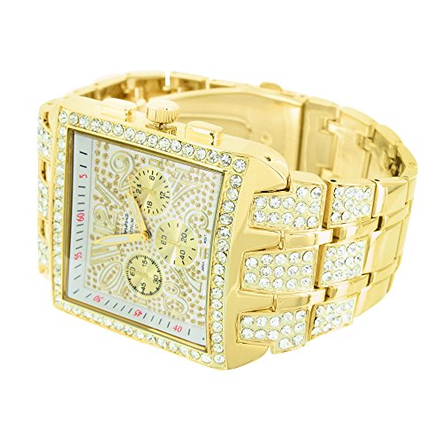 -. Binding : Watch -. Brand : Diamond and Co. -. Color : white -. Department : Womens -. EAN : 0738964395312 -. Feature : - (FEATURE) Women's Gold Finished Geneva Platinum Watch - (BENEFIT) Shows off your elite style statement through this magnificently Designed Wristwatch / #NAME? / - (FEATURE) Stainless Steel Casing - (BENEFIT) Stainless Steel does not tarnish and will last a lifetime; it is also hypoallergenic -. Label : Master Of Bling -. Manufacturer : Master Of Bling -. MPN : 079 -. PackageQuantity : 1 -. PartNumber : 079 -. ProductGroup : Watch -. ProductTypeName : WATCH -. Publisher : Master Of Bling -. Studio : Master Of Bling -. Title : Big Square Face Watch Mens Iced Out Lab Diamonds Geneva Gold Steel Back Jojo -1058 -. UPC : 738964395312