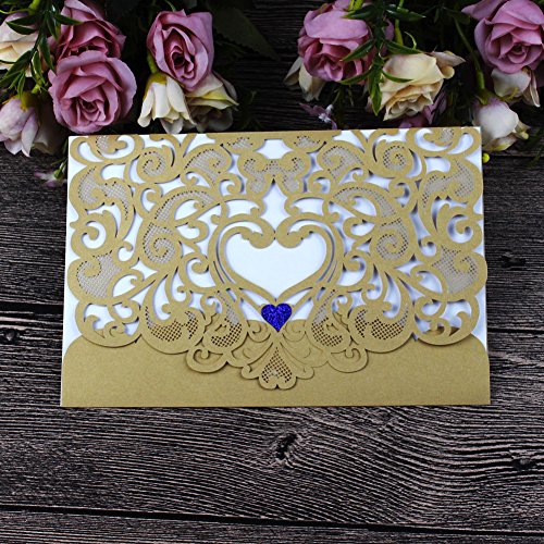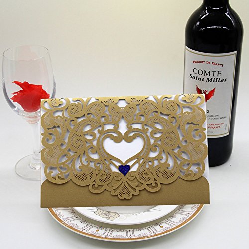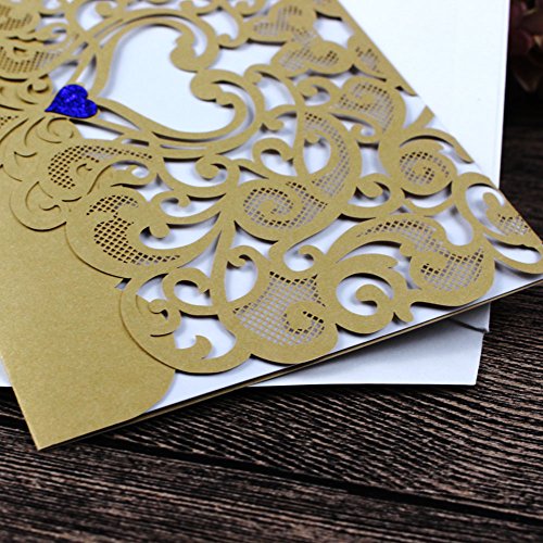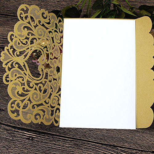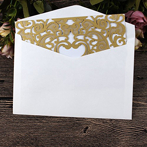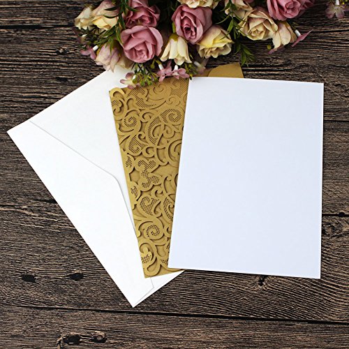 Wedding Invitation Card 50 pack, FOMTOR Laser Cut Wedding Invitations Kit with Blank Printable Paper and Envelopes (Gold+ White)