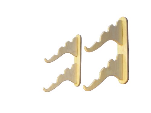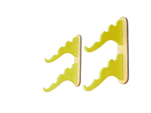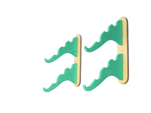 These USA made, double configuration racks are patented multi function display systems whose strength you can trust to securely organize and beautifully display eight inshore fishing poles of your choosing. Easy to install wall mounted back plates for the double configuration are 20" tall and the elephant inspired trunk arms protrude only 14" from the wall. This customizable furniture grade storage solution, constructed from 13 layers of laminated birch for strength as well as aesthetics, is designed to protect your investment by getting them off the floor and onto the wall where you can proudly display your adventurous soul. In addition to the different trunk sizes, you can choose from 7 hot trunk colors that each pop beautifully against the natural wood back plates. The Surf-Trunks line of display systems also includes single and triple configurations, as well as an SUP rack that boasts a patented paddle storage feature. Product Dimensions: 2 back plates 4"x20" Total installed length: 22.25" with 14" protrusion.Feature