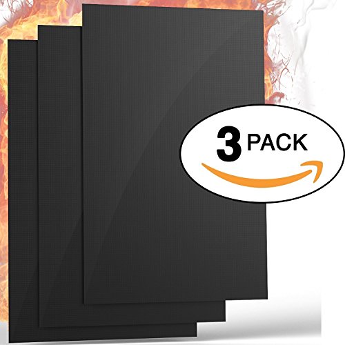 Non-Stick BBQ Grill Mats, 16 x 13 Inches 0.20mm Thick for Charcoal, Electric and Gas Grills FDA Approved PFOA & BPA Free (Pack of 3)
