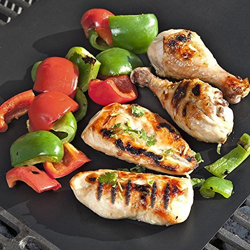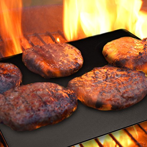 - MULTIPURPOSE - The BBQ grill Mat is perfect for: chicken, ribs, burgers, steak, fish, vegetables, pizza, pancakes, eggs, bacon and so much more! It's great for grilling, tailgating, camping, pool parties, or just a simple family dinner. The mat is compatible with any type of grill (charcoal, gas, electric & more)