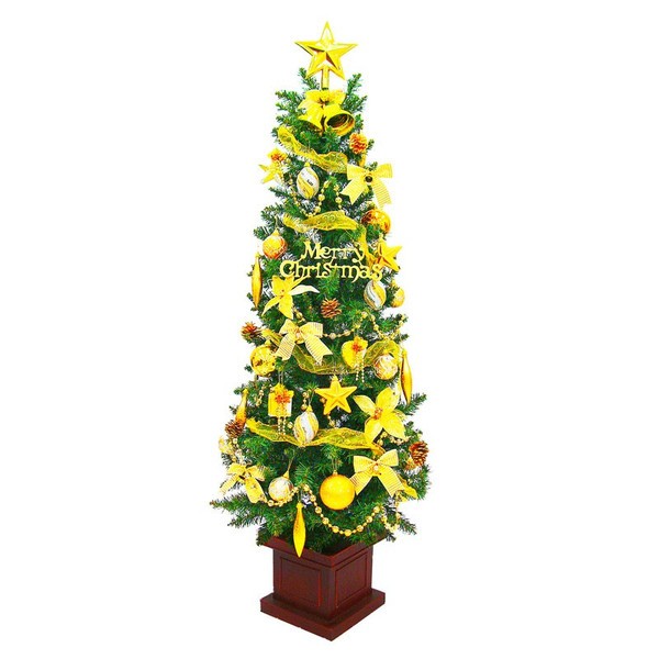 クリスマスツリー ウッドベーススリムツリーセット180cmサイズ 直径78cm×高さ180cm梱包 1個口外箱サイズ 28×34×84cm重量 約6kg組み立て式 2分割 ★店長の一言★当店不動の人気No1ツリーのオーナメントセットです!スリムなスタイルでかさばらず収納の際も分割できるのでさらにコンパクトで収納スペースいらず。ライトや飾りがたっぷり付いてのお値段です!