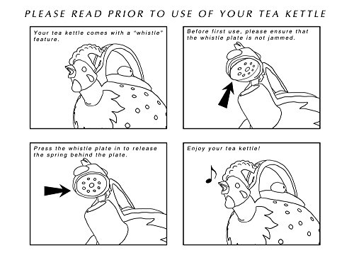 This tea kettle will add fun to your kitchen and bring a smile to your face every time you boil water. These designs come in a cute gift box, ready for gift giving. These kettles are made of enamel on steel (both inside and out) and the handle, spout and lid knob are made of durable plastic. These tea kettles are available in Giraffe, Cow, Rooster, Strawberry and Zebra.Feature