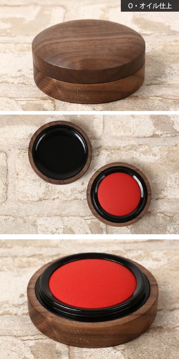 | 木を愛する方用には、木の質感残る「オイル仕上げ」を、高級志向の方には朱肉のイメージを壊さないよう「ウレタン塗装仕上げ」を用意しました。 |