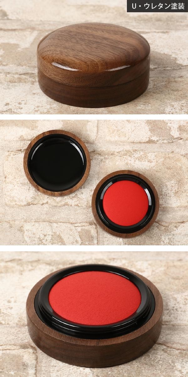 木を愛する方用には、木の質感残る「オイル仕上げ」を、高級志向の方には朱肉のイメージを壊さないよう「ウレタン塗装仕上げ」を用意しました。 |