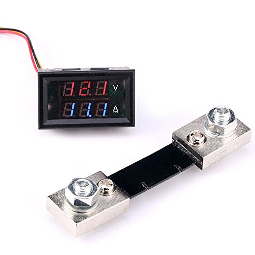 GERI® Volt Amp Voltmeter Ammeter 2in1 LED Digital Voltage Current Measurement Meter DC 5V 12V 4.5-30V/100A with Shunt Red +Blue