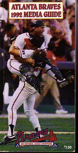 ATLANTA BRAVES 1992 MEDIA GUIDE-'91 NAT'L LEAGUE CHAMP. G/VG