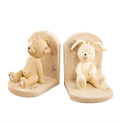 Product Description Cute teddy and rabbit resin bookends that will stand out on any child's bookcase. Each bookend weighs approx 692grams and measures approx 13cm tall, 9.5cm width and 10.5cm depth. 0