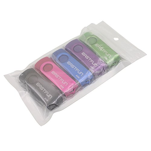 EASTFUN 5Pcs 8GB USB Flash Drive USB 2.0 Flash Memory Stick Fold Storage Thumb Stick Pen(Five Mixed Colors: Black Rose Blue Purple Green)
