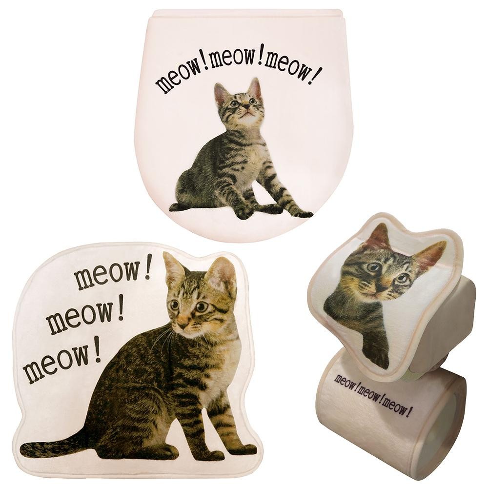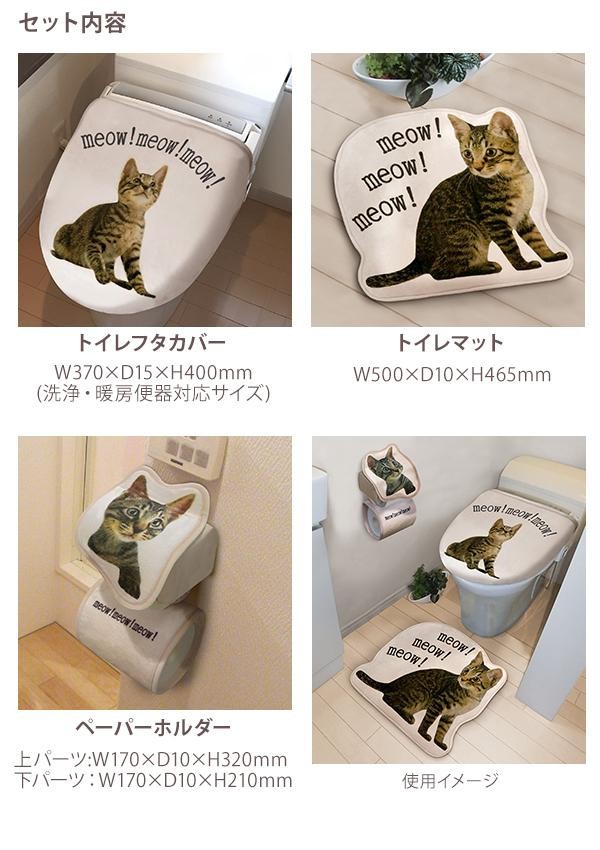 トイレマット、トイレフタカバー、ペーパーホルダーの3点セットです。トイレを猫で飾っちゃおう☆