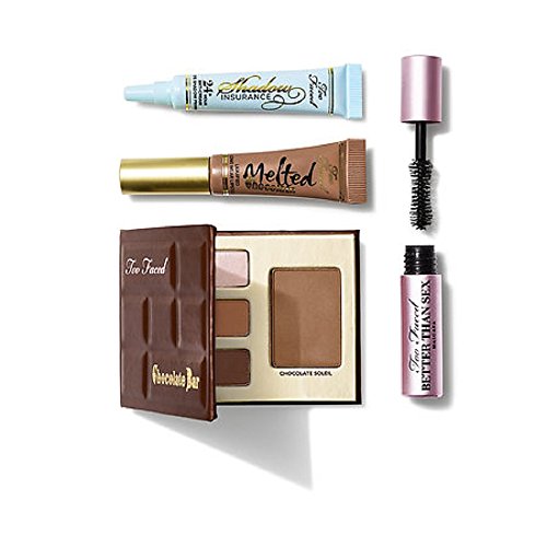 -. Feature : Includes: / - Deluxe Chocolate Bar Palette Each net wt. 0.9g/0.03oz. Total Net Wt.(0.09 oz. / 2.7 g) - Champagne truffle, Salted Caramel, Semi-Sweet & Chocolate Soliel / - Deluxe Shadow Insurance Anti-Creasing Eye Shadow P.R.Imer (0.17 oz. / 5 g) / - Deluxe Melted Liquified Long Wear Lipstick in Chocolate Honey (0.16 fl. oz. / 5 ml) / - Deluxe Better Than Sex Mascara in Black (0.13 oz. / 3.9 g)