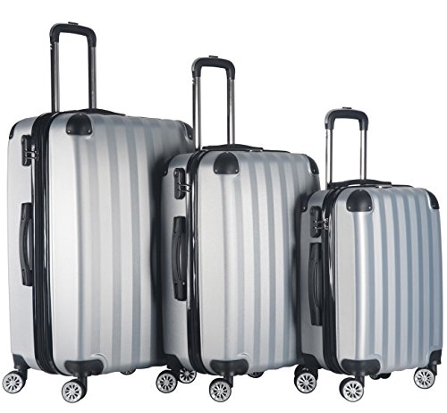 Product Description A perfect getaway deserves a perfect suitcase for your stuff, and we just found the best and fitting item for you with this all new dark solid geometric lines suitcases. A must have. Set includes: 3 Suitcases, Small suitcase: 14.2 inches long x 8.3 inches wide x 20 inches high and weighs 6 pounds, Medium suitcase : 17.3 inches long x 10.2 inches wide x 24 inches high and weighs 7 pounds, Large suitcase: 19.3 inches long x 12.6 inches wide x 28 inches high and weighs 9.3 pounds Features: Checkpoint-Friendly, Expandable, Locking, Rolling, Spinner, Fashion, Hardshell, Hardsided and Durable | Materials: Plastic 0